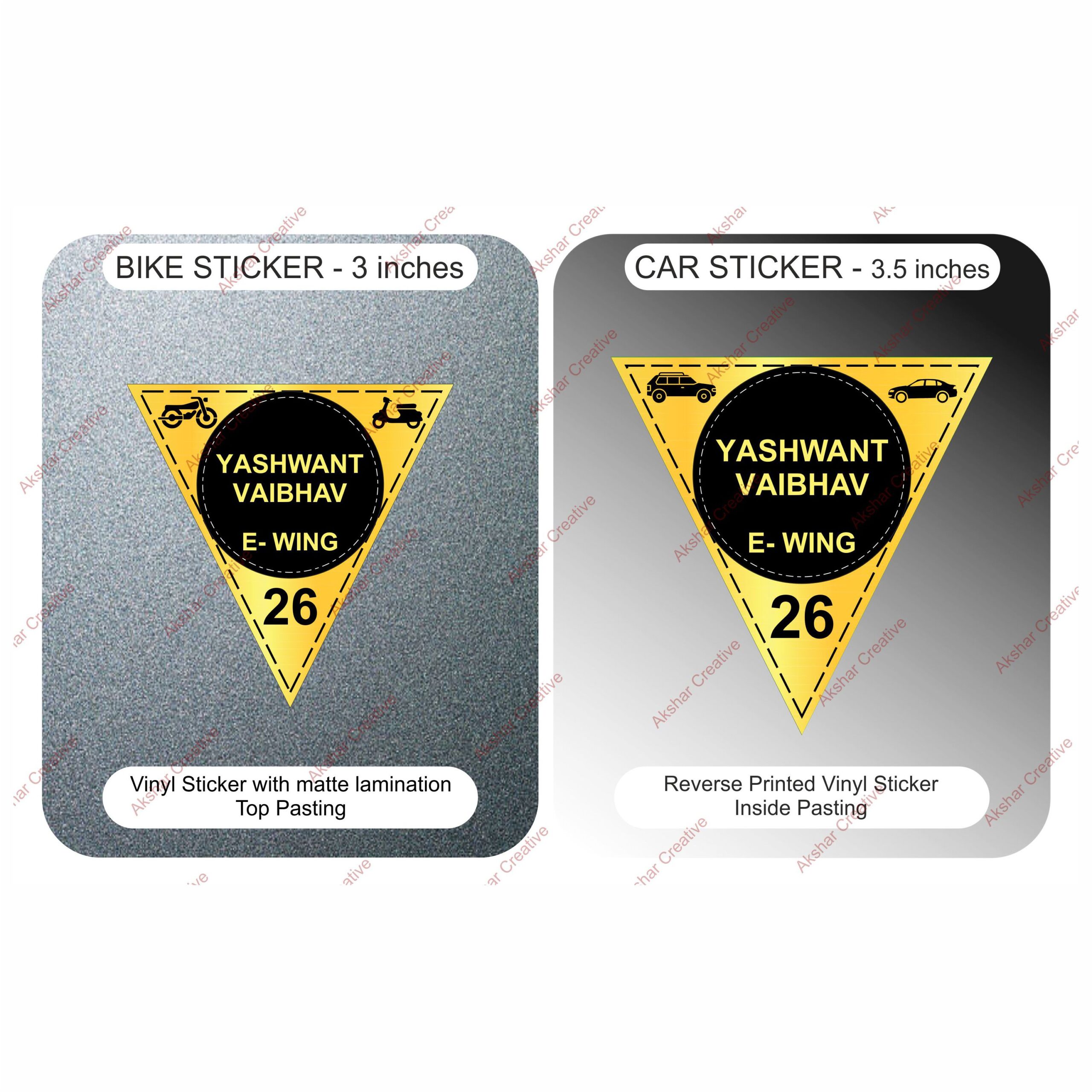 Bike Stickers Design Only 48 Pieces, Bike Stickers with flat number/others 48 Pieces, Bike Stickers with serial number 48 Pieces, Car Stickers with design 30 Pieces, Car Stickers with flat number/others 30 Pieces, Car Stickers with serial number 30 Pieces |